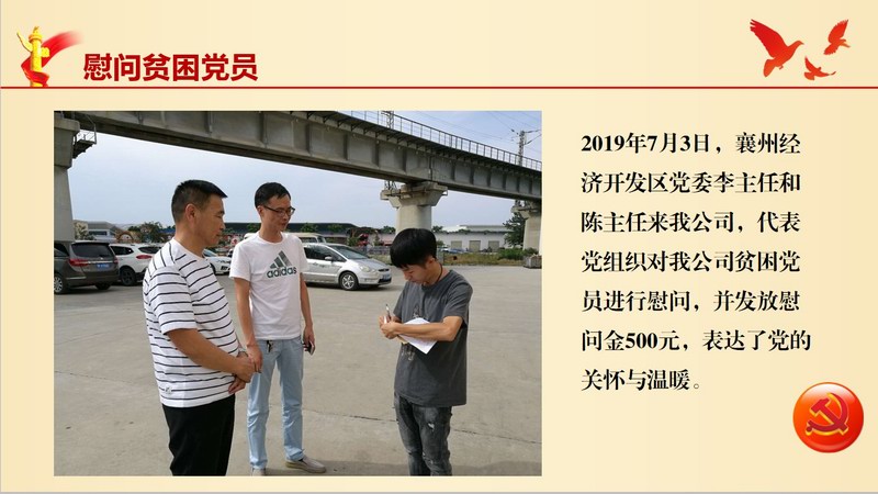 2、襄州區(qū)經濟開發(fā)區(qū)黨委來我公司慰問貧困黨員、新黨員入黨宣誓;
