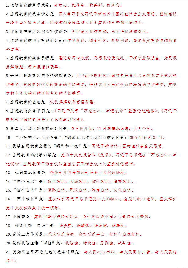本月黨支部書記要求各位黨員做“不忘初心、牢記使命”主題教育應(yīng)知應(yīng)會測試題。