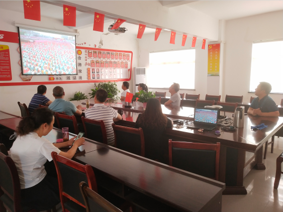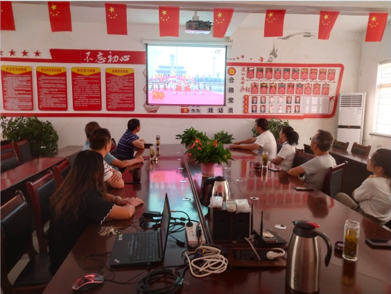 集體觀看中央電視臺實況轉(zhuǎn)播的建黨100周年活動。