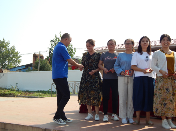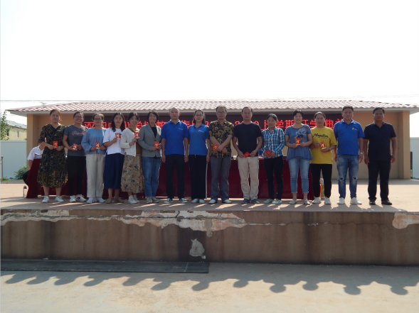 張書記和公司領(lǐng)導(dǎo)向優(yōu)秀教師發(fā)放獎(jiǎng)勵(lì)基金并合影留念。