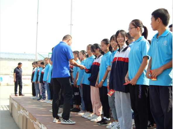 9點(diǎn)30分,我們準(zhǔn)時(shí)到達(dá)了學(xué)校,學(xué)生和老師們已經(jīng)整齊劃一的在新建的操場(chǎng)上集合了。