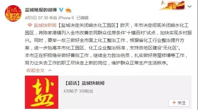鹽城決定關(guān)閉響水化工園區(qū)