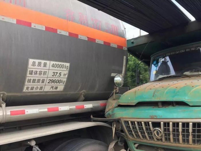 廣西平南油罐車與貨車發(fā)生刮蹭
